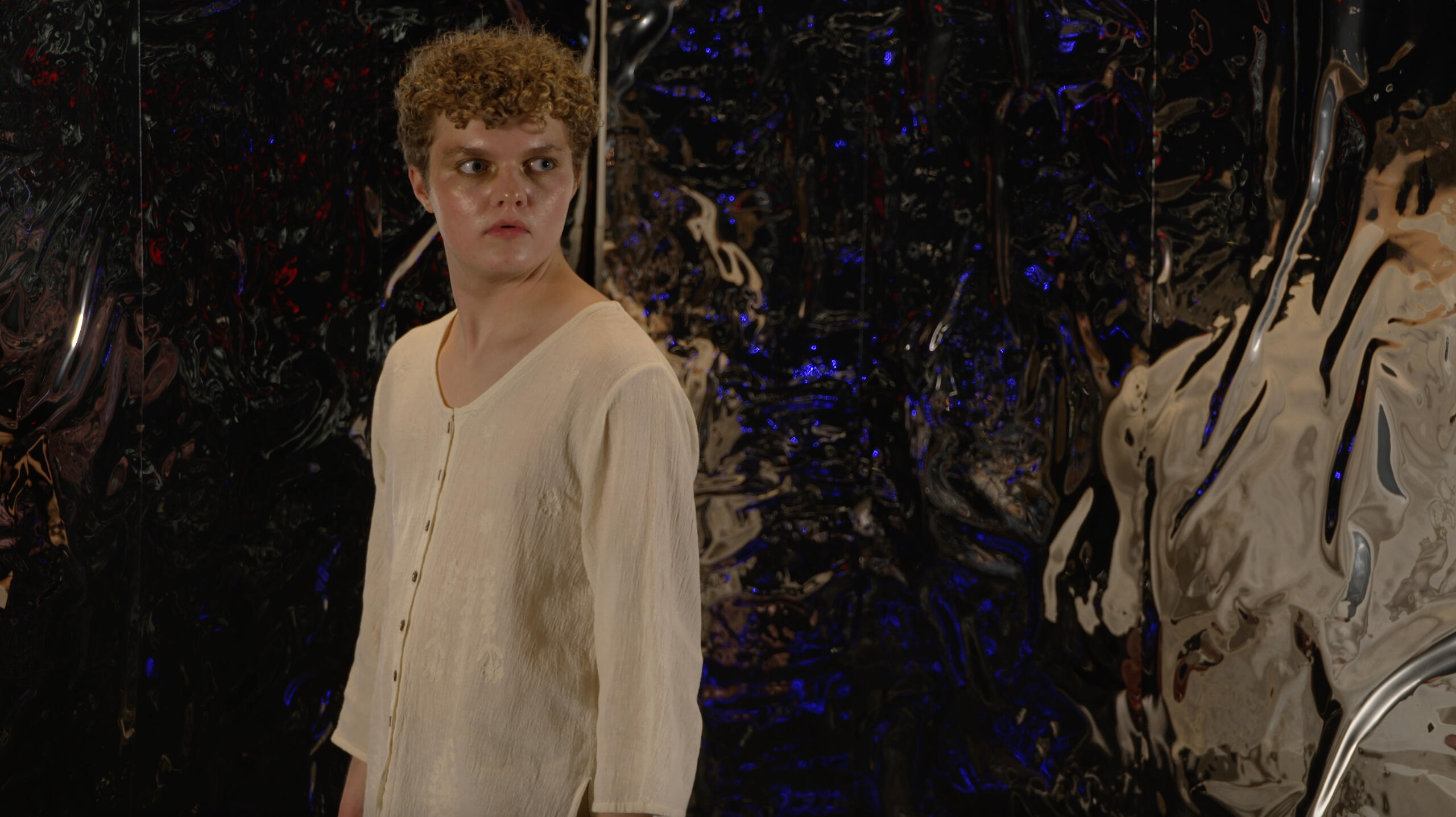 Iphis and Ianthe is a short film that places the Greek myth of the same name in a more contemporary framework.The original myth of Iphis and Ianthe tells the story of an impoverished couple in ancient Crete who is forced to give up their daughter due to their inability to afford her future dowry price. However, on the evening before the delivery of her daughter, Telethusa prays to the goddess Isis for a solution. Isis gives her word that she will have a son but the next day, Telethusa gives birth to a daughter. She hides her child’s gender to her husband and raises the baby as a boy, naming him Iphis. Iphis grows up unaware of his differences from his male friends. One day, he meets a young woman named Ianthe and they instantly fall in love. Iphis quickly asks for her hand in marriage but fears her discovery of his female sex. He begs Isis to make him a biological man and she grants his wish, fulfilling her promise to Telethusa 18 years prior.Our film updates this story, questioning the idea that all transgender individuals seek surgery to alleviate their dysphoria. Instead, we discuss Iphis’s process of learning how to accept his body and becoming comfortable sharing himself with another human being.Iphis and Ianthe takes influence from Wes Anderson’s work as well as experimental films, combining virtual production, unconventional script writing, and rich visual symbolism.Iphis and Ianthe ultimately begs the question “how do we discover safely how to share our bodies with our first love?”